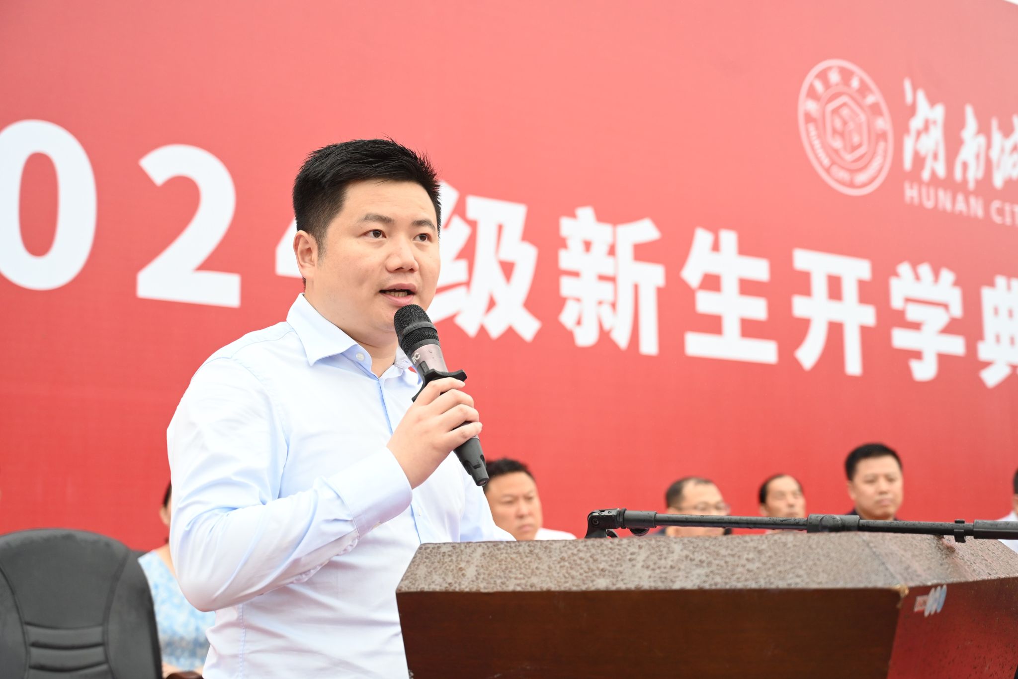 “一代代城院人追求卓越、敢为人先,城院的影响正立足湖南、辐射全国、走向世界……”何振寄语2024级新生:一城有一城的风景,一程有一程的追求,同学们要融入城院的奋起、融入城院的精神、融入城院的愿景,握紧“接力棒”,一张蓝图干到底,在新征程上跑出加速度,争做筑梦人、追光者。