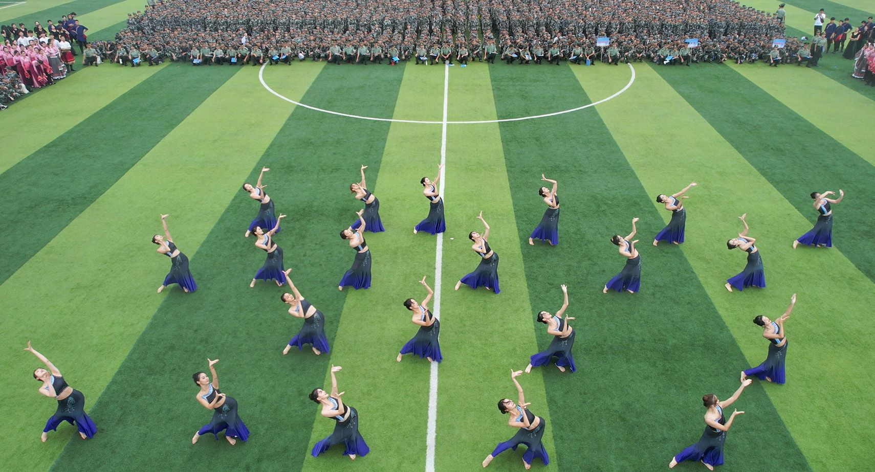 “古老的中国,如一座巍峨的山峰,千秋耸立,气势磅礴”……来自音乐与舞蹈学院的学生带来了舞蹈《盛世中华》,翩翩舞姿描绘出一幅山清水秀的壮美画卷。