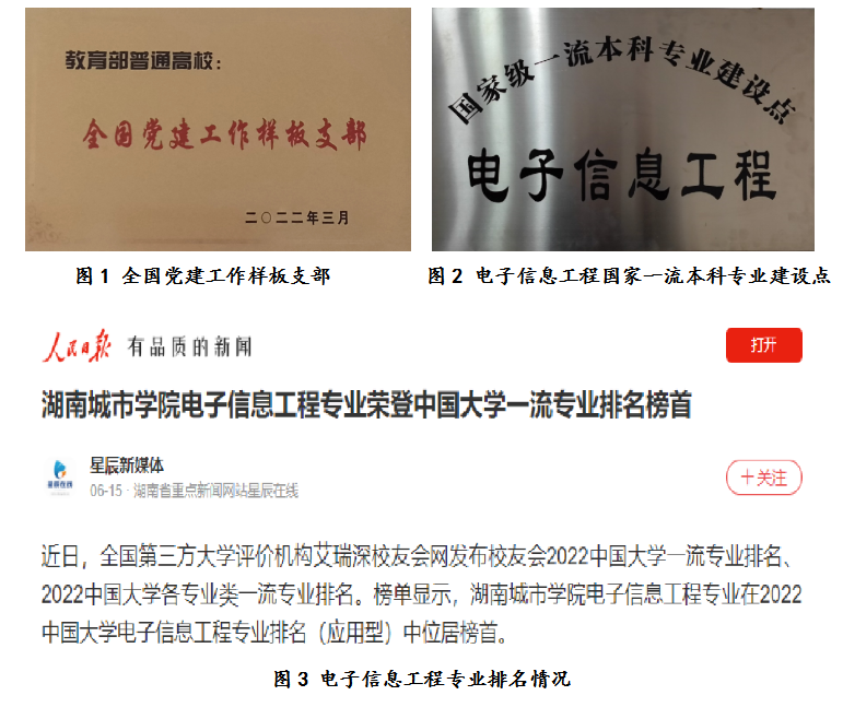 以习近平新时代中国特色社会主义思想为指导,坚持社会主义办学方向,全面贯彻落实党的教育方针。学院党委实施“一三四”党建工程,即:以“铸魂育人”为中心;以“对标入党誓词,检查政治忠诚;对标党员义务,检查履职尽责;对标时代先锋,检查自身差距”为主要内容开展“三对标三检查”党员常态化教育活动,引导党员做讲政治、讲作为、讲奉献的表率;以“做好课程思政、做强教学科研、做实人才培养、做深服务社会”四个重点为突破口,促进党建与业务工作深度融合,落实立德树人根本任务,有机融合“三全育人”和“五育并举”,推动学院高质量发展。近年来,学院获批全国党建工作样板支部1个、全国高校“双带头人”教师党支部书记“强国行”专项行动团队1个、全省教育系统先进基层党组织1个,入选湖南省高校教师党支部书记“双带头人标兵”2人、湖南省高校“青年教工党员示范岗”1人,有效助推了学院一流学科、专业建设和高质量人才培养。全国第三方大学评价机构艾瑞深校友会网发布校友会2022年中国大学一流专业排名,荣耀体育官方网页版_荣耀体育(中国)电子信息工程专业在排名(应用型)中位居榜首。