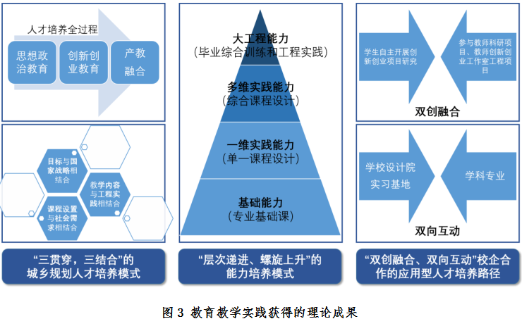 1.面向中小城镇“三贯穿、三结合”的建筑类专业人才培养模式。面向中小城镇培养建筑类专业人才目标,形成“三贯穿”即思想政治教育、创新创业教育、产教融合贯穿人才培养全过程;“三结合”即培养目标与国家战略相结合、课程设置与社会需求相结合、教学内容与工程实践相结合的人才培养模式。