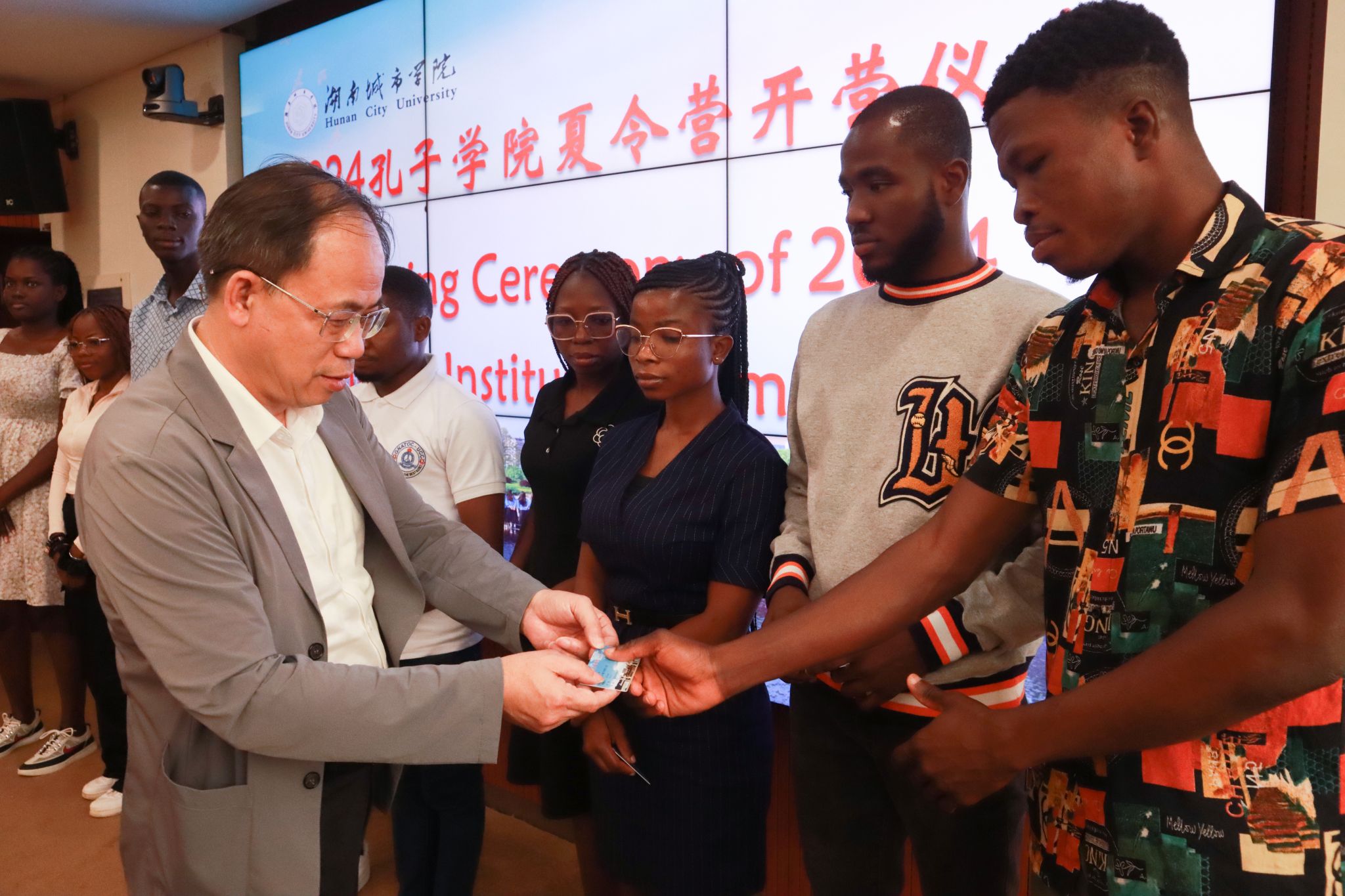 开营仪式上,何振代表学校对夏令营营员的到来表示热烈欢迎。他向来自非洲的年轻朋友简要介绍了学校的发展情况,回顾了多年来学校与非洲加纳跨越万里、双向奔赴,开展富有成效的合作与交流,传达了未来学校在中非战略合作机遇下推动中非合作的努力方向。他期望夏令营营员能通过这次活动,亲身体验中国文化的多姿多彩,学习了解中国礼仪,深切感受中国人民的友好情义,成为中加人民的友好使者。