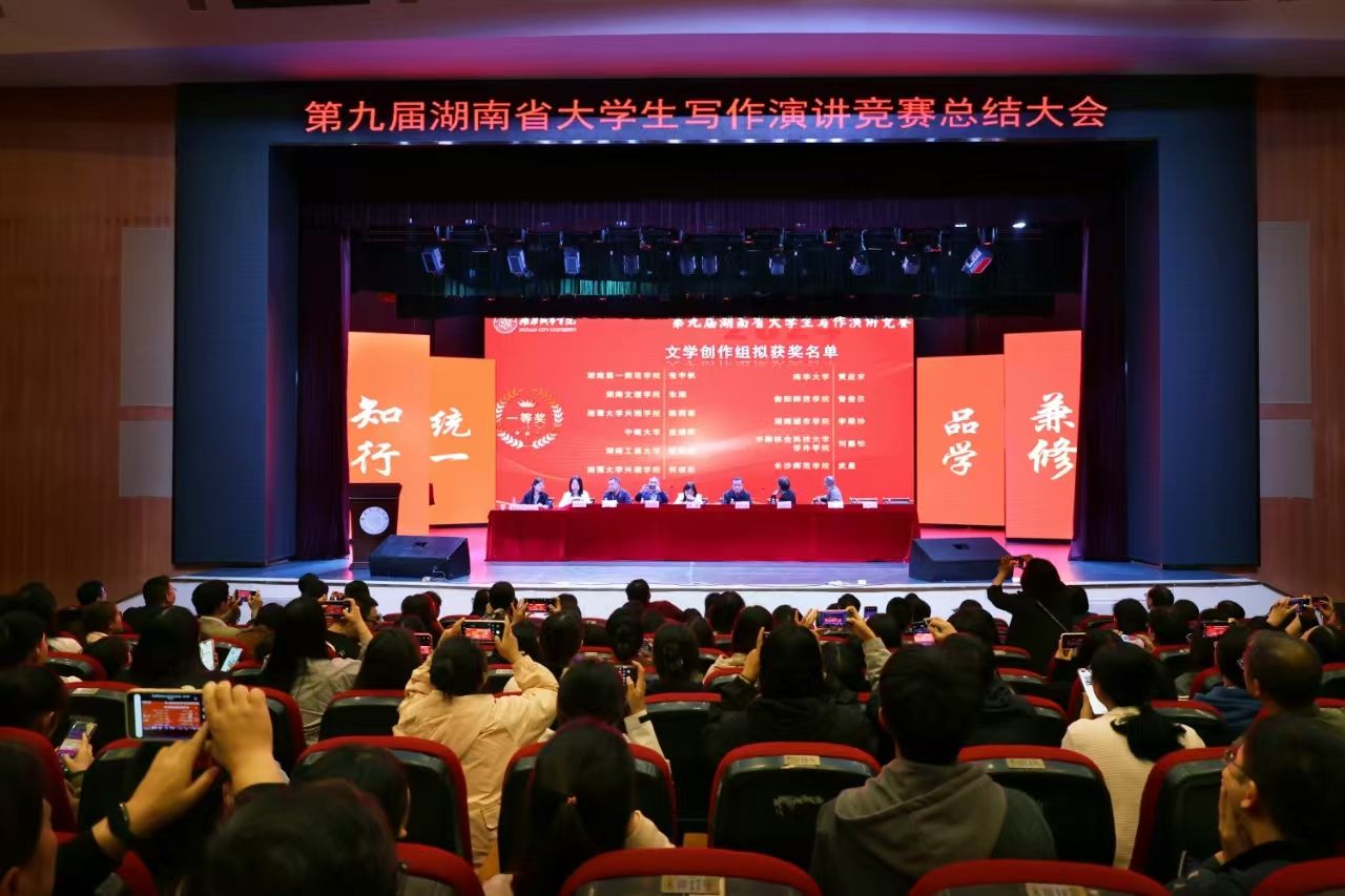 据悉,湖南省大学生写作演讲竞赛是面向省内普通高校中国语言文学类专业学生的一项重要赛事,以培育人文精神、传承文学经典、提升专业能力、培养表达能力、推动学科创新为竞赛目的,为提升中文相关专业的人才培养质量,促进湖南省各大高校师生的友好交流提供了平台。
