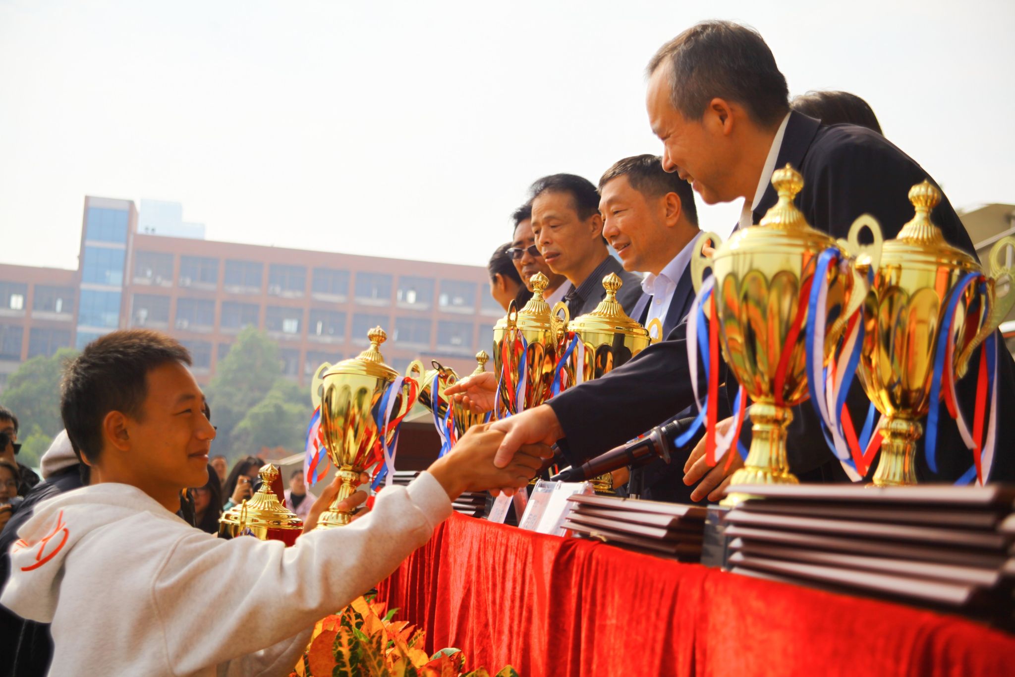 本网讯(实习记者 刘欣宇 张人丹)11月9日, 经过三天激烈角逐,我校第二十一届田径运动会暨第八届体育文化节圆满落下帷幕。副校长谭献良,党委委员、组织部部长吕贤军出席闭幕式,为获奖运动员和先进团体颁奖,并向他们表示祝贺。