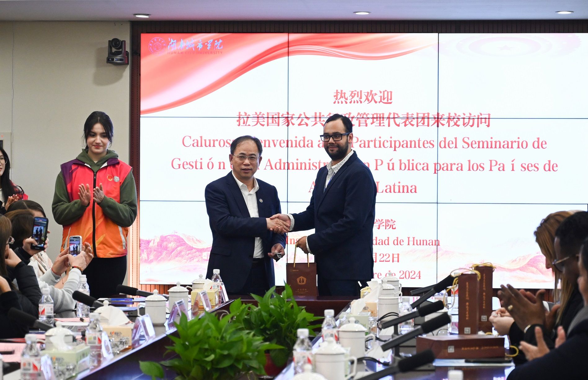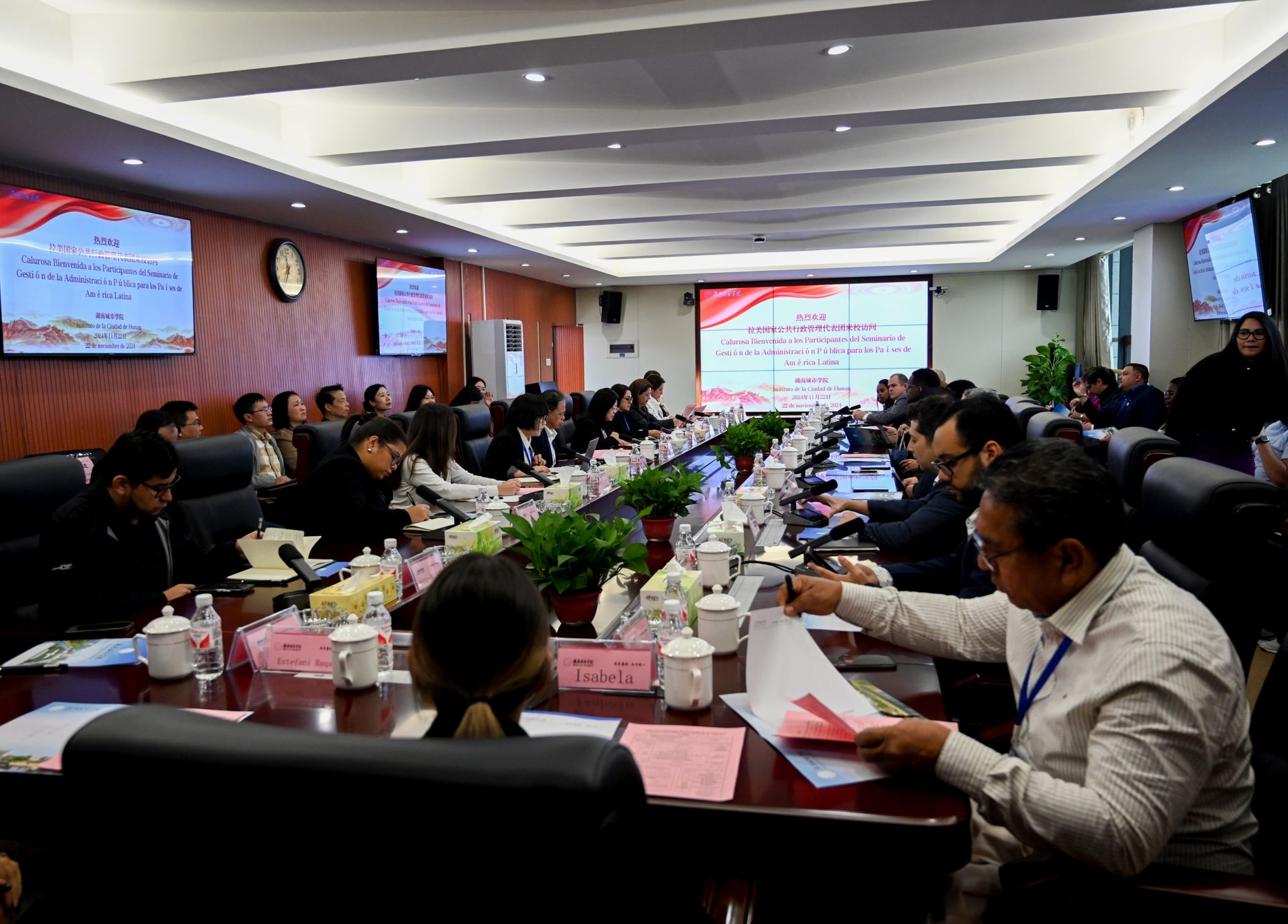 本网讯(通讯员 丁鸣)11月22日,拉美国家公共行政管理代表团来校访问来自拉美地区8个国家的35位官员代表与我校师生进行了深入交流。校长何振、副校长徐姝出席交流座谈会。
