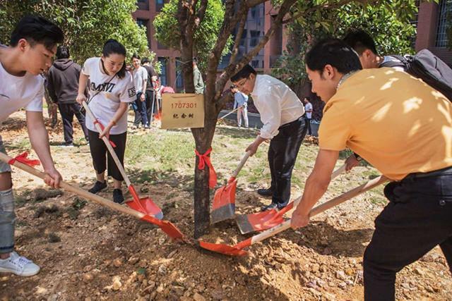 荣耀体育官方网页版_荣耀体育(中国)党委书记罗成翼(左三)与毕业生一同栽树。