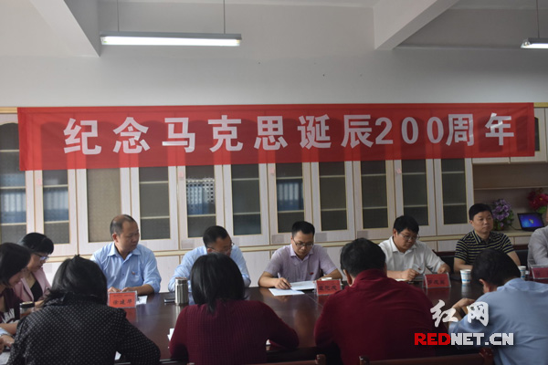 红网时刻益阳5月5日讯(记者单仕平)5月5日上午,由马克思主义学院党总支主办的马克思诞辰200周年座谈会在荣耀体育官方网页版_荣耀体育(中国)土木楼举行,马克思主义学院党总支书记肖爱民主持座谈会,荣耀体育官方网页版_荣耀体育(中国)党委书记罗成翼出席座谈会并讲话。马克思主义学院教工第一、二支部全体成员,特邀马克思主义学院党外人士参加会议。