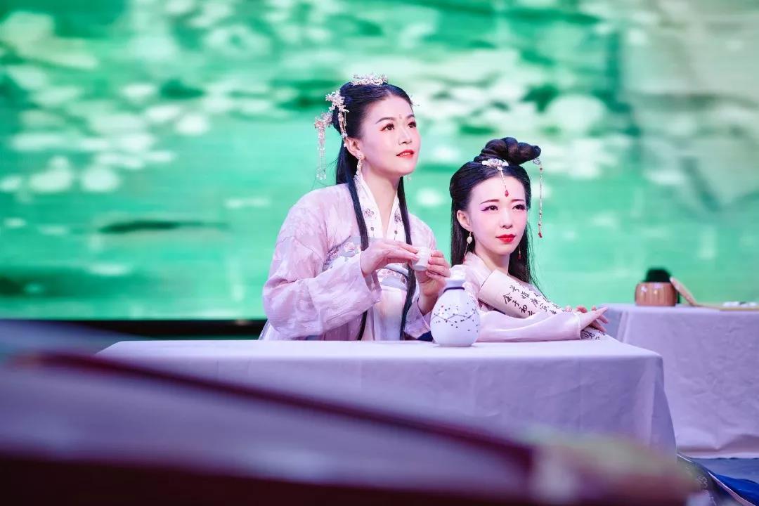表演现场,古筝演奏《天问》空灵悠远,诗歌吟诵《离骚》饱含深情,表达了教师们对战国时期楚国爱国诗人屈原高洁品性和卓越才华的深深敬仰。围棋博弈《楚秦对决》扣人心弦,书法展示《地腊良辰》洒脱俊逸,传递出教师们对中华民族恢弘历史的深切尊重的和传统文化佳节的美好祝福。协会负责人介绍,国画展示《芙蓉裳》、酒艺展示《桂浆浓》、茶艺展示《沐菊英》,创作灵感分别来源于屈原《楚辞·离骚》中的“集芙蓉以为裳”、《九歌 东君》中的“援北斗兮酌桂浆”、《楚辞·离骚》中的“夕餐秋菊之落英”;花艺展示《思美人》,花材也主要取自屈原赞颂过的兰、菊等植物,意在将端午节庆习俗与“琴、棋、书、画、诗、酒、花、茶”古人八大雅事文化有机融合,结合汉服展示,为推动中华传统文化创造性转化和校园文化创新性发展作出一点积极的、微小的尝试。