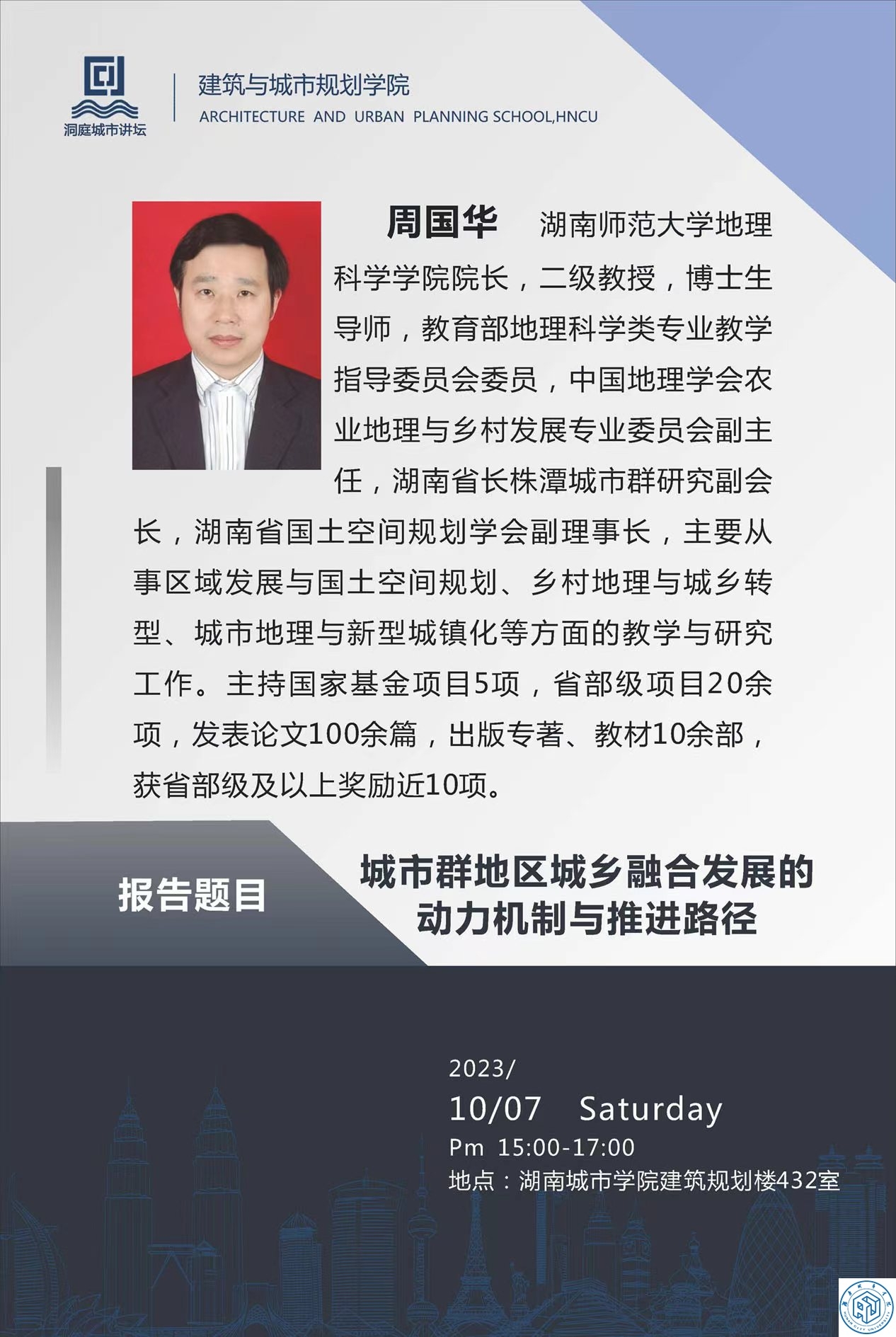 下一条:中南大学郑伯红教授“面向‘国空’的气候适应性循证规划设计策略”学术报告
