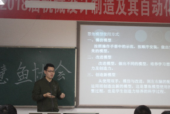 为突出我院特色,建设好学院品牌社团,慧鱼协会于2019年526日在土木楼506702开展了第三届慧鱼模型拼装大赛慧鱼协会指导老师郭高峰,首先为同学们介绍了慧鱼协会的具体情况,并详细解释了什么是慧鱼,慧鱼可以做什么。在郭老师的介绍下,同学们学会了拼装慧鱼模型的基本技巧。随后同学们在土木楼702慧鱼实验室,进行热火朝天的拼装大赛。一个个黑色红色的小模具,在同学们的手上变成了可以自行活动的小型机器人。慧鱼模具拼装而成的机器人展现的正是机械的魅力。用慧鱼制作的简单机器人可以通过齿轮转动来实现物品的远距离输送,还可以用太阳能作为动力,在运动过程中实现对障碍物的识别从而实现转向绕开。通过本课程的学习,培养学生的科研兴趣,推动学生在本科阶段得到科学研究与发明创造的训练,调动学生的主动性、积极性,激发学生的创新思维和创新意识,营造创新教育文化氛围,全面提升学生的科技创新能力。在同学们的掌声和欢呼声中,本次慧鱼模具拼装大赛取得了圆满成功。