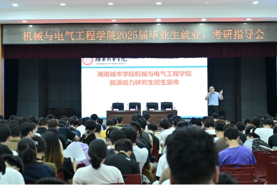 会议第二部分,机械与电气工程学院副院长黄志亮教授首先对考研现状与就业进行了详细分析,并介绍了机械与电气工程学院能源动力硕士点专业,详细介绍了该专业的发展前景、培养方向以及与社会需求的紧密联系。同时为同学们提供全面的考研复习方法和择校等问题,激励他们积极面对就业和深造挑战。