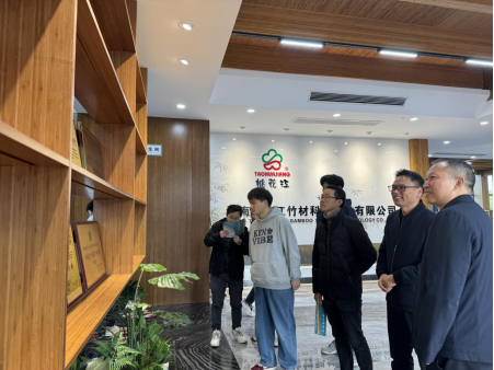 桃花江竹材科技董事长薛志成及人力资源总监陈灿对学院师生的到来表示热烈欢迎,并陪同学院师生一行参观了企业展厅、生产车间、研发中心和员工生活区域等,详细介绍了公司文化、发展历程及竹材加工的工艺流程、产品特色及市场应用等。