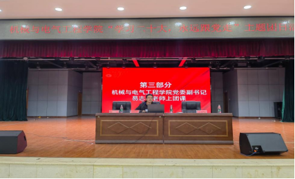 2022年11月28日晚19点我院在新食堂三楼活动中心开展“党在我心中,永远跟党走”主题团课,本次团课由机械与电气工程学院党委副书记易志明授课,我院团委学生会全体学生干部、21级和22级全体班长及团支书共同参与。