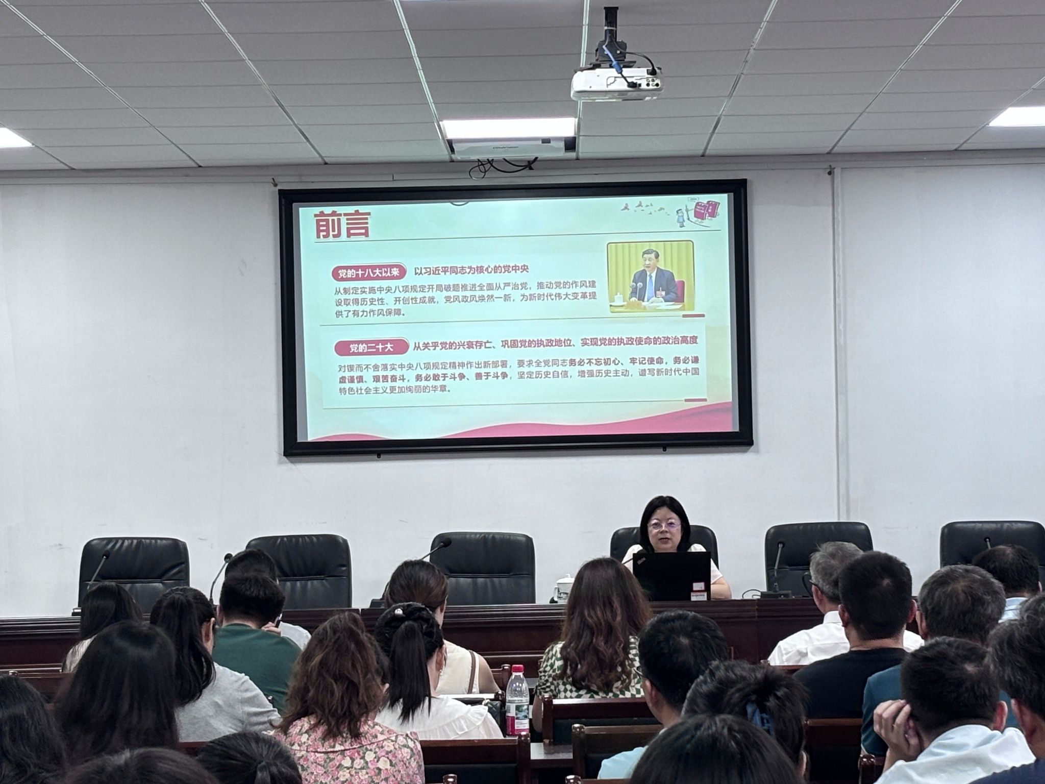 本网讯(通讯员:李姗)6月20日下午4点,学校党委委员、副校长徐姝在管理楼504会议室讲授了以“深入贯彻中央八项规定精神学习教育——推动党的作风持续向好,为推进学校高质量发展提供坚强保障”专题党课。徐姝围绕“重温中央八项规定的历史和内容”“违反中央八项规定精神主要表现”“违反规定适用的相关党纪条规”“全面落实学习教育的具体举措”等四个方面作了深入阐释。她强调中央八项规定精神是党员干部必须长期遵循的行为...【详细信息】